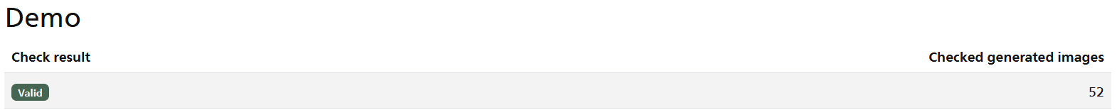 If all your project's images are stored as intended, the validity check will displays the value "valid".